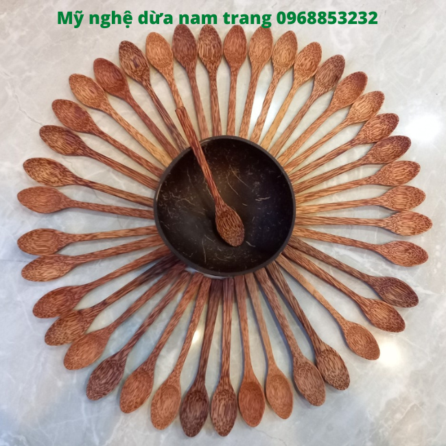 Xưỡng Mỹ Nghệ Dừa Nam Trang sản xuất và nhân gia công muỗng thìa nĩa dao gỗ dừa, gỗ mun các size từ 12cm, 16cm, 17cm, 18cm, 19cm,... giá tốt, số lượng lớn cho xuất khẩu và có làm theo mẫu khi khách yêu cầu số lượng lớn.